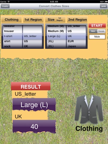 With Clothes on your device you always have the conversion value you need with no more "guesstimating." Clothes for iPhone, iPod Touch and iPad can convert any region clothes dimensions for you.