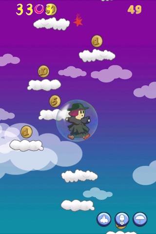Watch out the falling star ! And collect the coins above the clouds.