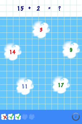 This is a free version of Cloud Math. It offers addition and subtraction operations on numbers up to 50. For working with higher numbers, multiplication and division - download Cloud Math.