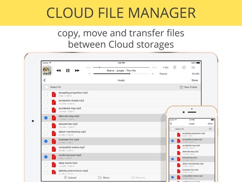- iPhone and iPad music library support. Now you can upload your iTunes tracks to the cloud right from your device