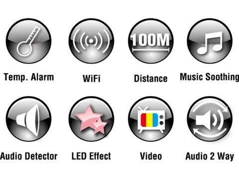 The WiFi Cloud baby monitor. It can not only work with Smartphone or Tablet, but can detect the temperature of baby’s room and then play adorable music to sooth baby, and LED light flash automatically to take care of crying baby which is controlled by free download APP. Furthermore, it also supports Peer to Peer technology. You can watch your lovely baby on the internet wherever you are.