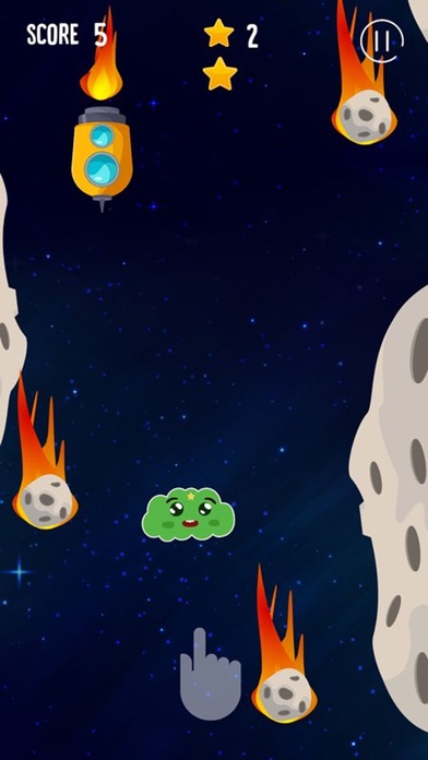 Experience the adventure of a cloud space in this super simple yet attractive game play with nice graphics and digital sound. All you have to do is to just Tap on the screen to Rise and Jump through the world by dodging asteroids in a fast paced game. And if you do enough points you will receive a space shield !