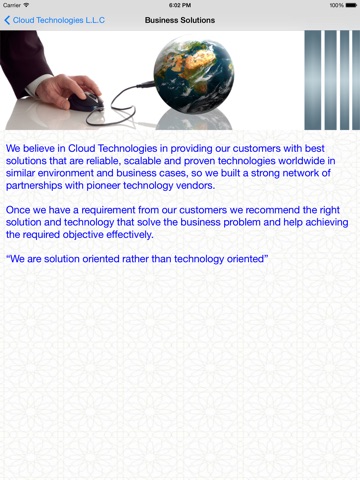 Cloud Technologies application provides business information about "Cloud Technologies" company. This includes the company main areas of work:
