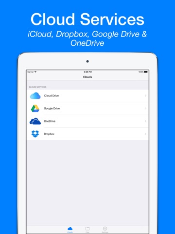 Cloud Explorer lets your manage your iCloud, Dropbox, Google Drive, OneDrive files in one app. With PDF Reader, Image Viewer and ZIP File Extractor in the app.