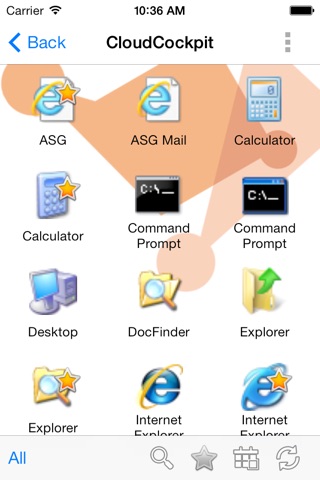 The ASG-CloudCockpit Mobile Client lets you access your published enterprise applications using Citrix or Microsoft RDP plus web applications. Requires ASG-CloudCockpit access portal version 7.2+ and Citrix Receiver App and Microsoft RDP App in current versions. Includes OneTimePass functionality for 2-factor authorization.