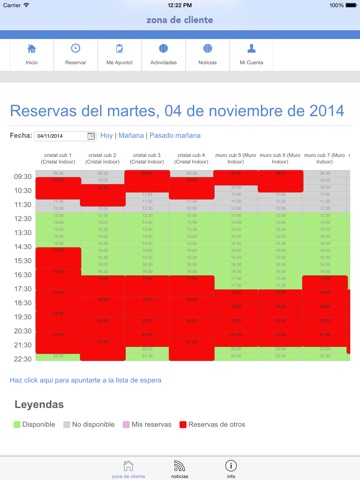 - Buscar y reservar pista. Si no disponemos de la hora deseada libre, te proponemos la más próxima.