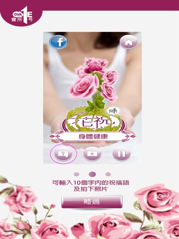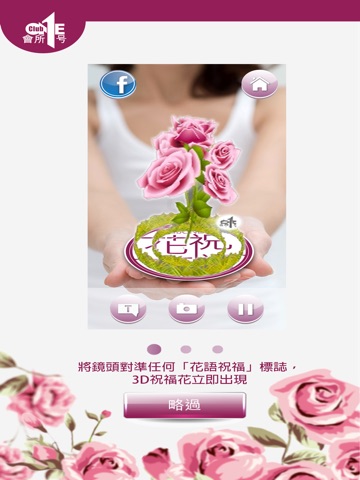 啟動花語祝福APP並以鏡頭對準任何「花語祝福」或ClubONE標誌,隨機3D祝福花立即活現眼前,添上祝福語及拍低照片於Facebook與親友分享,一齊憑花寄意送上祝福。