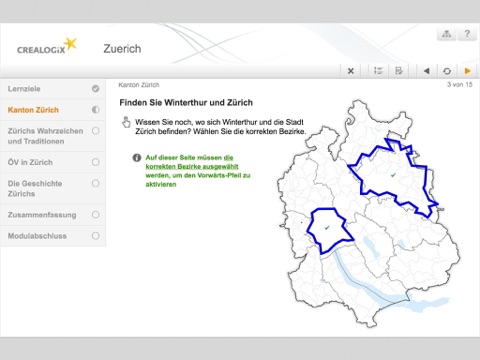 Genau das, was E-Learning auf mobilen Endgeräten so attraktiv und erfolgreich macht! Die App präsentiert dem Benutzer auf eine ansprechende Art und Weise Lernmodule und Selbsttest. Der Benutzer meldet sich einfach an und findet den Lerninhalt in einer interaktiven Übersicht wieder. Im Nu ist das gewünschte Lernmodul gestartet und steht jederzeit bereit, auch wenn der Benutzer zwischendurch anderen Tätigkeiten auf dem Gerät nachgeht. Das ist effizienter als im Browser, wo man oft den Überblick verliert.