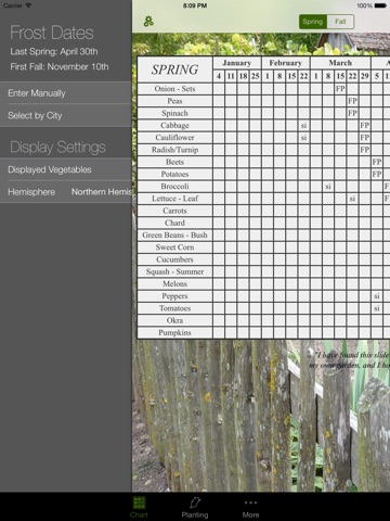 Clydes Garden Planner is a handy, easy to use, vegetable planting chart for the home and hobby gardener. This unique Vegetable Planting Chart presents gardening events in a "time phased" format so that it is possible to see at a glance the entire vegetable planting, growing and harvesting period. Chart shows indoor & outdoor planting times relative to spring and fall frost dates for 22 common Garden Vegetables. This chart will save you hours of research, and greatly increase your chances of having a successful vegetable garden by avoiding the frost.