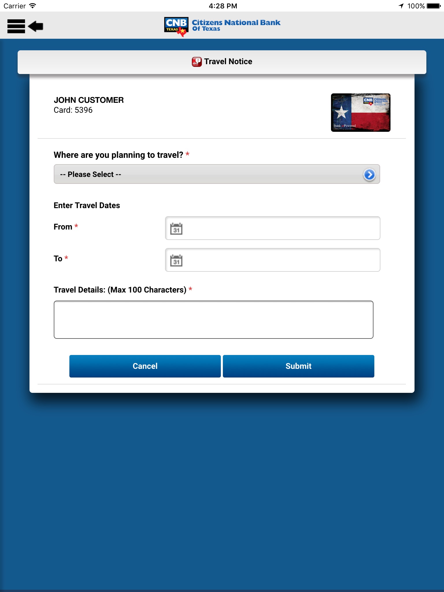For additional support or questions, please visit www.cnboftexas.com/mobile-banking