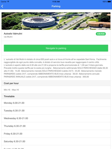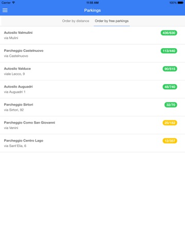 Per ogni parcheggio vengono indicati in tempo reale il numero di posti disponibili.