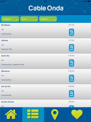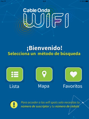 Ahora buscar los Wifi Hostpot de Cable Onda es súper fácil!; entra y selecciona un método de búsqueda, encuentra tus puntos Wifi por zona o por categoría, agregarlos a tus favoritos y compártelos. También podrás ver el mapa que despliega los puntos Wifi mas cercanos a tu ubicación.