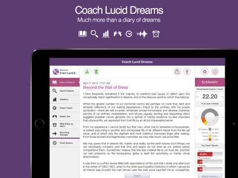 For the price of a notebook, you can get a complete application to keep a full record of your dreams, dream signals, statistics, and much more.