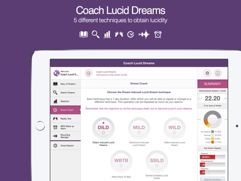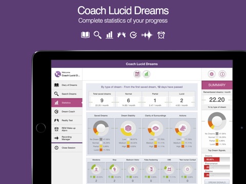 Keep track of your progress with the statistics provided by coachluciddreams: month by month , or cumulative total.