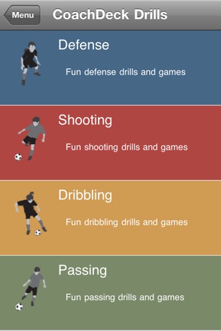 CoachDeck is perfect for the busy soccer coach on the go! Are your players ready to practice and you need a drill to have them do on the fly? The free version provides you with an exciting drill in each of four color-coded categories; Shooting, Passing, Dribbling and Defense, including instructional cards. Each drill contains a unique, "Make it a Game" feature that turns it into a fun and exciting competition your players will want to do again and again!