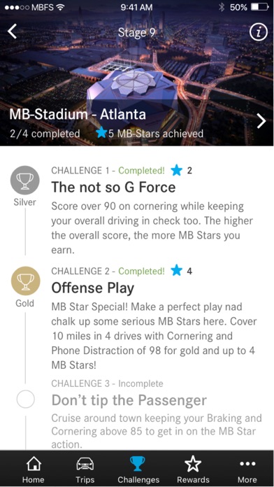 The CoachMyDrive by Mercedes-Benz Financial Services (MBFS) app promotes safe driving by providing you with detailed feedback on your driving behaviors derived from GPS localization and phone technologies. The app also provides you an interactive and engaging Mercedes-Benz themed experience through stages and challenges that increase in difficulty while offering you rewards for good driving results. The automatic trip logging captures and stores all of your trips on the device to later review your trip results.