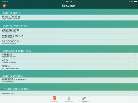 The coating weight calculator is a universal iOS app for estimating dried coating weight as applied for printing and converting processes. Extremely useful for on-the-floor troubleshooting of doctor blade systems, gravure cylinders, coating recipes, and more!