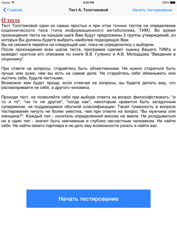 Программа содержит три теста для самостоятельной оценки личности (определение ТИМ) с точки зрения cоционики: