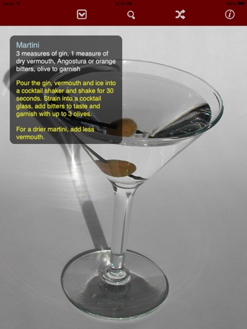 - Swipe or Scroll through the list of cocktails and jump straight to the one you want.