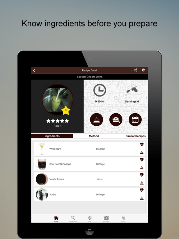 Cocktail Drinks SMART Recipes is an app to explore worldwide famous and unique cocktails. The app has a vast offline collection of more than 500 recipes. Find the recipes with different Taste Buds. A cocktail done right can really show your guests that you care - said Danny Meyer. It is true that any party is incomplete without drinks, and if it it about drinks, there has to be cocktails. The app helps to prepare cocktail drinks in a simple and easy step by step method.