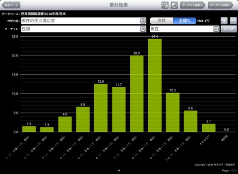 気になる項目をタップすると、その項目が値が高くなるターゲットをアンケート調査データの中から探し出します。