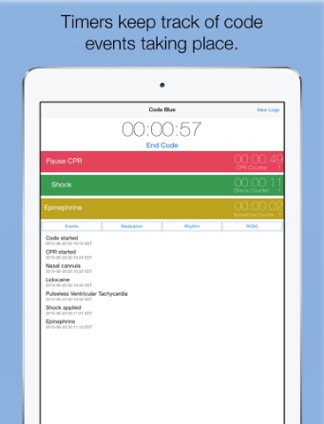 This application was made for medical professionals to keep track of key events during the management of a cardiac arrest.