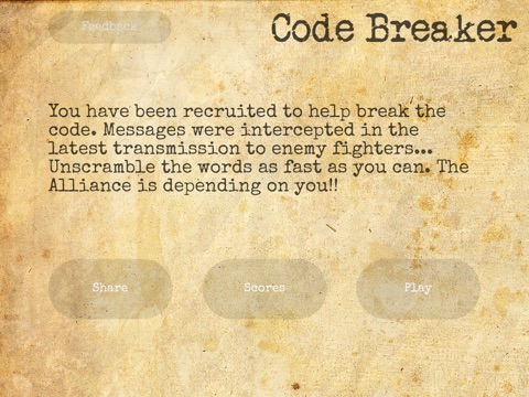 You have been recruited to help break the code. Messages were intercepted in the latest transmission to enemy fighters... Unscramble the words as fast as you can. The Alliance is depending on you!!