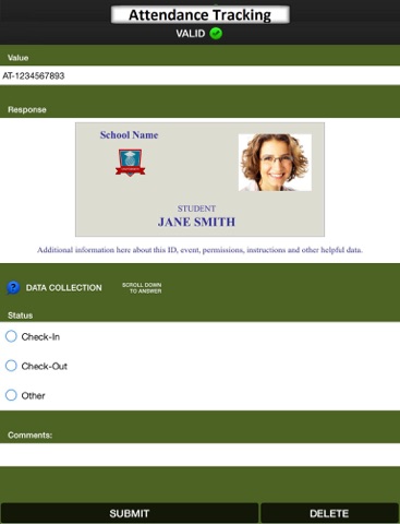 Use the app in conjunction with our paid web services to scan barcodes, read NFC, and capture text (OCR). You can collect data with form fields, secondary scans, multiple choice answers, drop-down menus, photos, GPS locations, and signatures. You can record and validate the data embedded in each scanned barcode and know who scanned (app usernames), what they scanned (i.e. barcodes, RFID/NFC, OCR), when they scanned (timestamps), where they scanned (GPS), how they scanned (capture type), and why they scanned (your configured workflow).