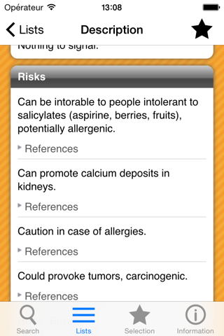 This is the result of summary work conducted by our editors with the help of sixteen carefully documented and much diversified sources. From them, we have extracted and gathered information, which is clearly referenced in the application, and noted each additive according to the following criteria :