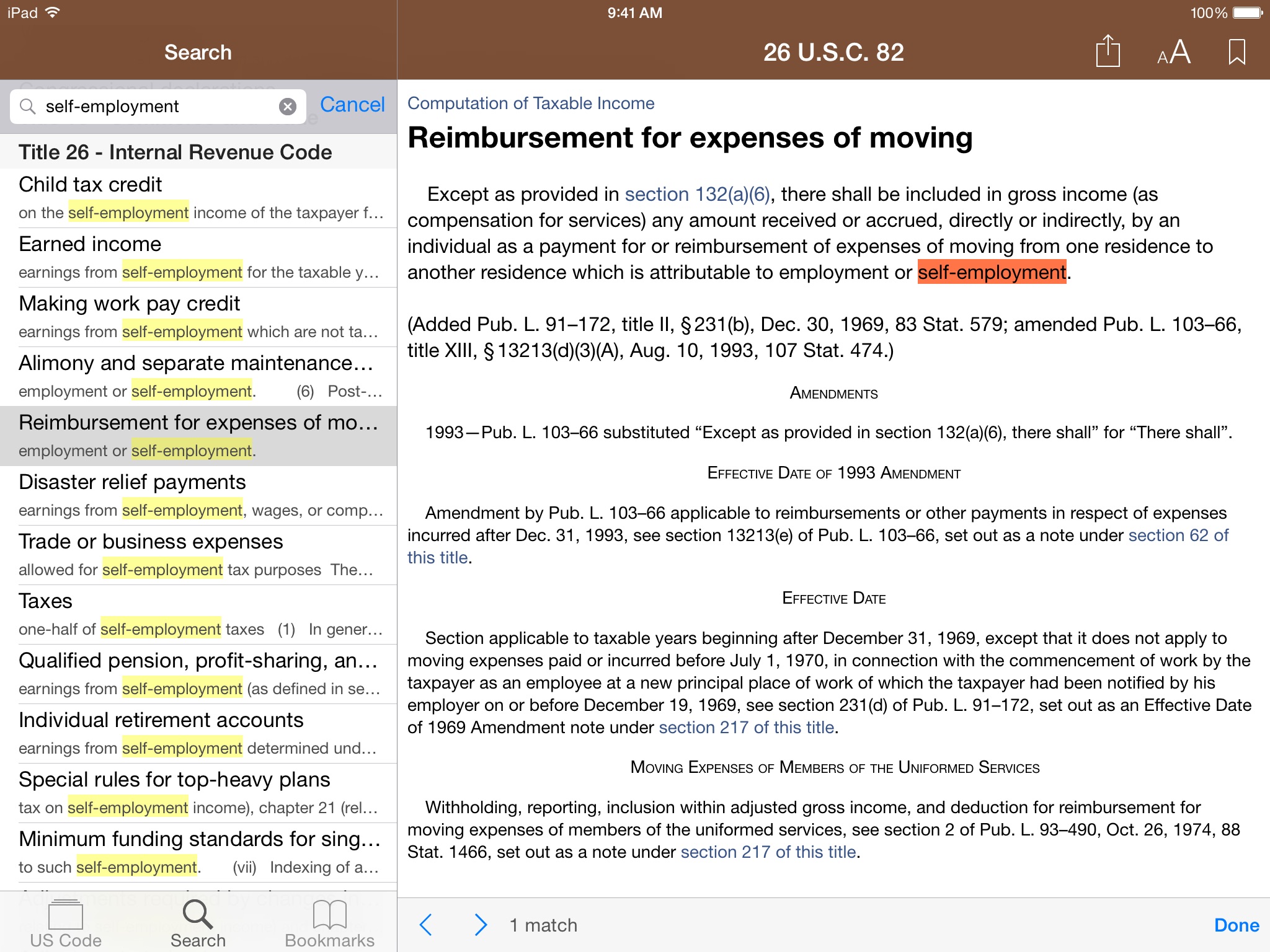 Codification is an app for searching and viewing the United States Code. It contains all the 52 titles, including the Internal Revenue Code (Title 26) and the Judiciary and Judicial Procedure (Title 28), along with editorial notes, cross-reference links, and many useful features. It is a must-have for anyone interested in law.