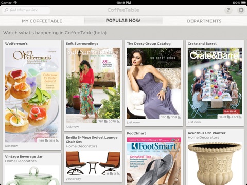 CoffeeTable is like having your own personal shopper for over 200 stores in one central location on your tablet. Browse through more than 200 of the finest retail catalogs from a wide range of major retailers including Crate & Barrel, Nordstrom, REI, & Express, alongside many independent boutiques with their unique product offerings.