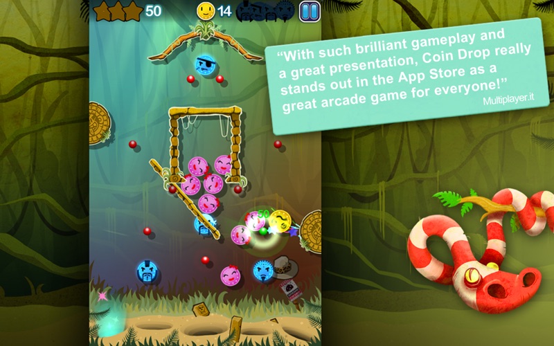 "It’s easy to pick up, easy to put down, easy to resume, and a blast to play wherever. But more important than its breeziness, Coin Drop rocks." - TOUCH ARCADE *****