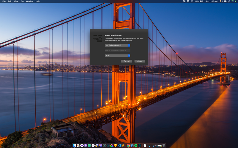 · Notificaciones. Si quieres obtener una notificación cuando el precio alcance un precio menor-igual o mayor-igual de una moneda específica.