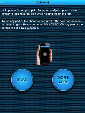 Simply fire up the app, jerk the phone up and down and watch the coin flip like a real coin and land to either a heads or tails.