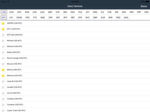 Suivre le cours sur plusieurs plateformes le top, Manquerait juste le graphique des volumes déchange mais cette appli à des mises à jour et optimisé iOS7 Et la mise à jour apporte un choix de temps dans les graphiques! Un véritable couteau Suisse.