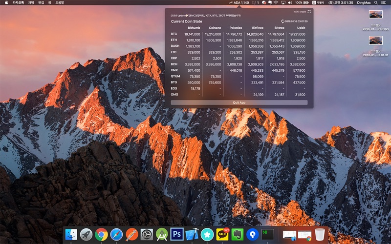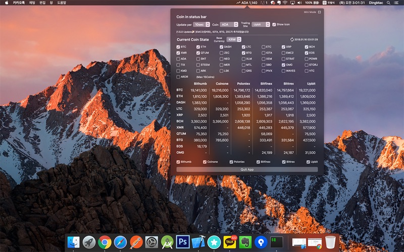 코인들의 실시간 가격정보를 제공합니다.