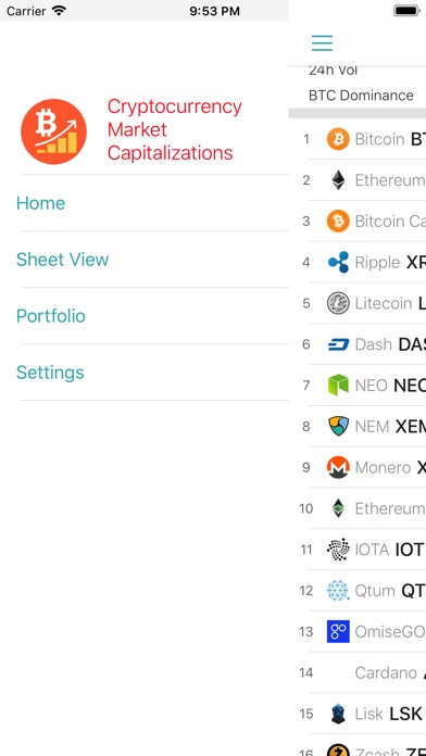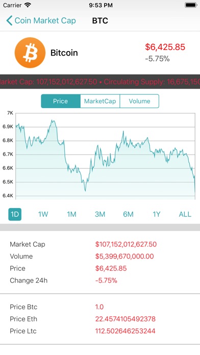 Easily spot market trends with advanced graphing and data analysis so you can act quickly and invest in the most profitable cryptocurrencies. Shows coin price, trade volume, rate comparisons, market cap, market supply, price graphs, and change percentages.