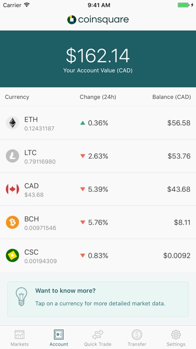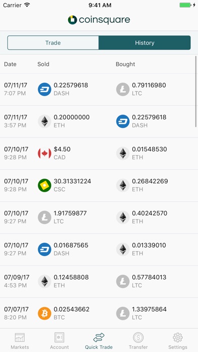 Our platform makes it easy for both first timers and seasoned traders to get trading digital currencies in minutes. Coinsquare for iOS sets a new bar for trading and managing digital currencies on mobile.