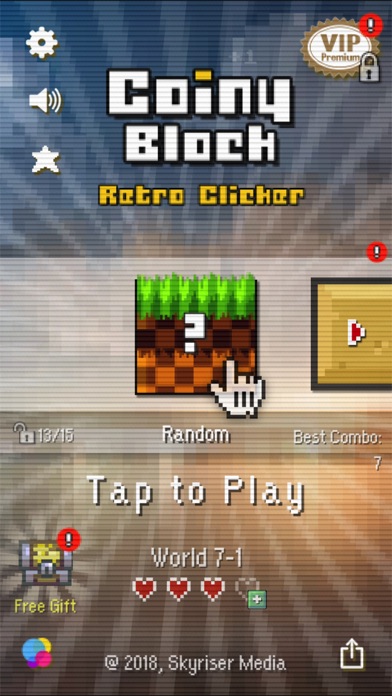 Coiny Block is an arcade clicker game with retro graphics. You tap the block to collect more coins, unlock more blocks, and at the same time avoiding enemies and a collecting power ups. You have 3 hearts, and you lose a heart if you accidentally tap on an enemy. You can refill your hearts by picking up hearts and potions power ups.