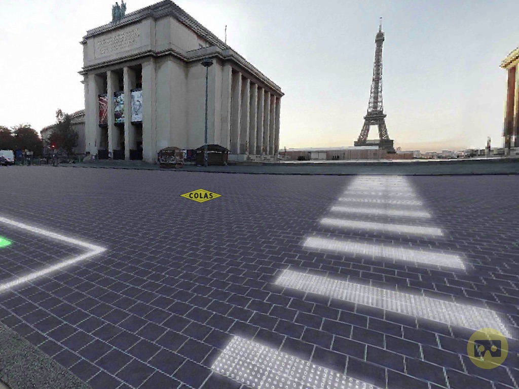 Lapplication COLAS 360 vous immerge dans un environnement réel dans lequel une version virtuelle de Wattway a été implémentée.