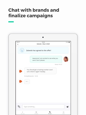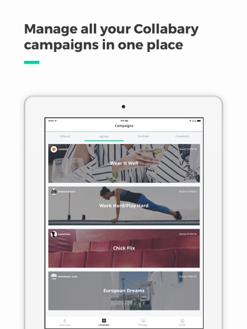 With the Collabary App Content Creators can execute all the basic actions needed to collaborate with a brand on a joint campaign:
