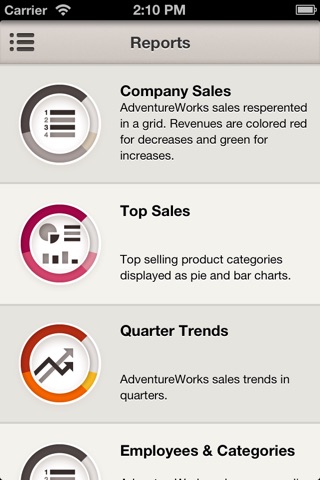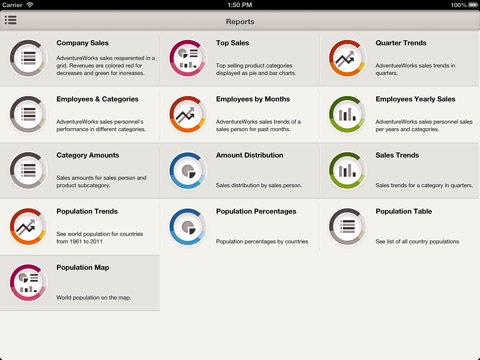 CollabMobile can easily use your existing data warehouse for building mobile reports and publish these reports to mobile devices in few mouse clicks. CollabMobile takes data from various data sources like Oracle, Sql Server, SAP, and web services.