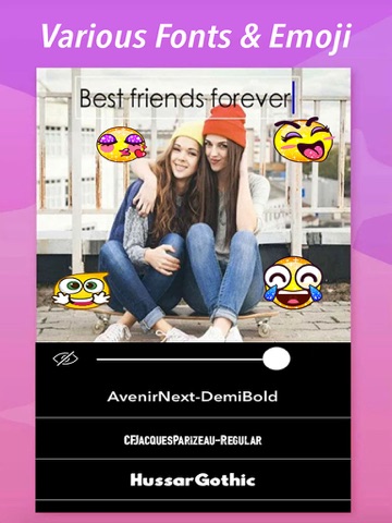 3. Add Text on Photos: Write texts to your picture using different fonts. And also You can resize and color, and apply some cool text effects to them.
