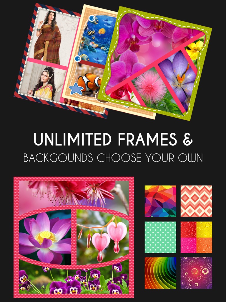 + Collage Maker is a brilliant collage creator and photo editor for you to make beautiful collages using your own photos.