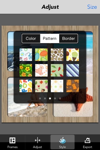 There are many ways to customize the frame such as rounded corners (for each photo area as well as for the entire collage), frame shadow, border thickness, and aspect ratio. As for the background, you can pick the exact color of your choice or select from various background patterns available.