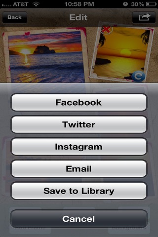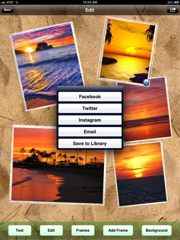 Once your done making your awesome collage you can easily upload them to Facebook, Instagram, Twitter, email them, or just save them in your photo library.