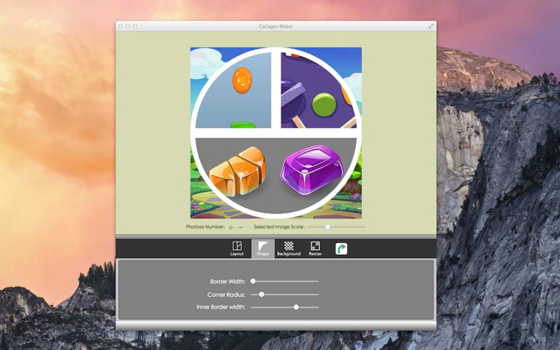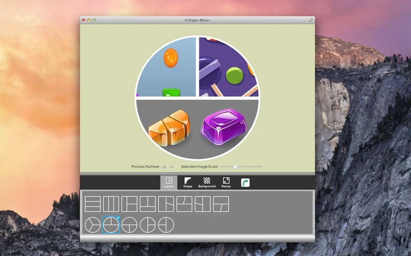 Collages Maker is a small tool which helps you combine different pictures into the frames for your business for the Mac users!