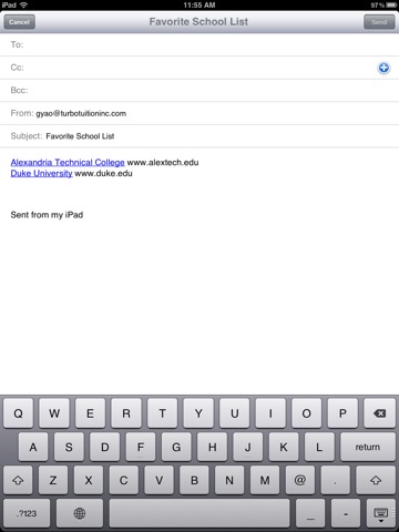 While you input your search criteria, you can always switch back and forth between school page and search page. On search page, you can mark your favorite colleges and compile a list of your favorite schools for future reference. Moreover, you can conveniently send your favorite schools list to yourself or your contacts as an email.