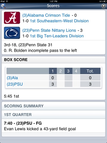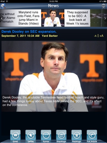 Get the latest news about your college football teams from multiple rss news feeds, live tweets, live scores, current schedules, roster, stats, and standings.