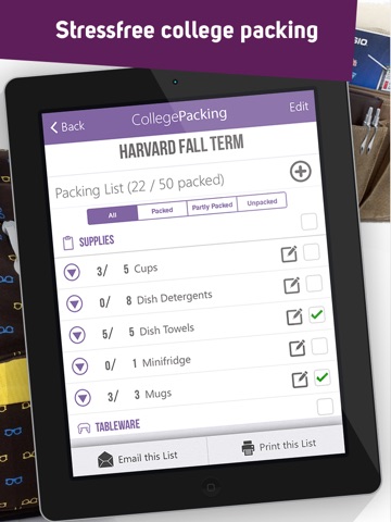 + Customize: 100% custom college packing list. Easily add or remove items with just a tap.